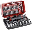 1 x cliquet 1/4" "Paume de main" - R.161 + 10 x douilles 1/4" 6 pans métriques : R.5,5 - 6 - 7 - 8 - 9 - 10 - 11 - 12 - 13 - 14 mm+ 21 x embouts 1/4" série 1 - L 25 mm/ED+ 1 x embout porte-douilles 1/4" - ECR + 1 x cardan universel 1/4" - R.240A+ 1 x douille 1/4" porte-embout à jonc de retenue standard - R.235+ 1 x poignée tournevis 1/4" courte - R.236C+ 1 x rallonge 1/4" standard L 55 mm - R.209+ 1 x rallonge 1/4" standard L 100 mm - R.210.